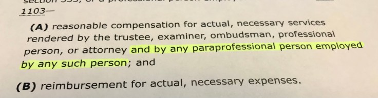 - It allows for compensation of an in-house “paraprofessional” as part of the trustee’s own services and fee application.