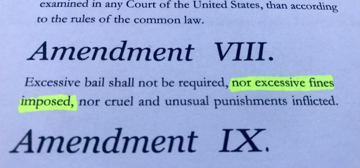 Their concurring opinion provides this set-up for their “excessive fine” discussion: