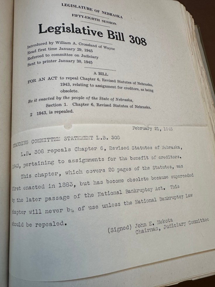 Nebraska hasn’t had an assignment for benefit of creditors (“ABC”) statute since 1945 . . . until now.