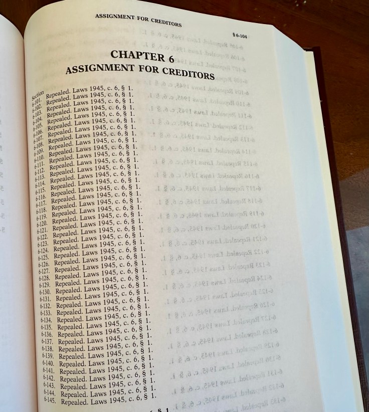 - See photo above for how such Chapter 6 appeared after 1945 and until Nebraska’s enactment of the Uniform Assignment for Benefit of Creditors Act.